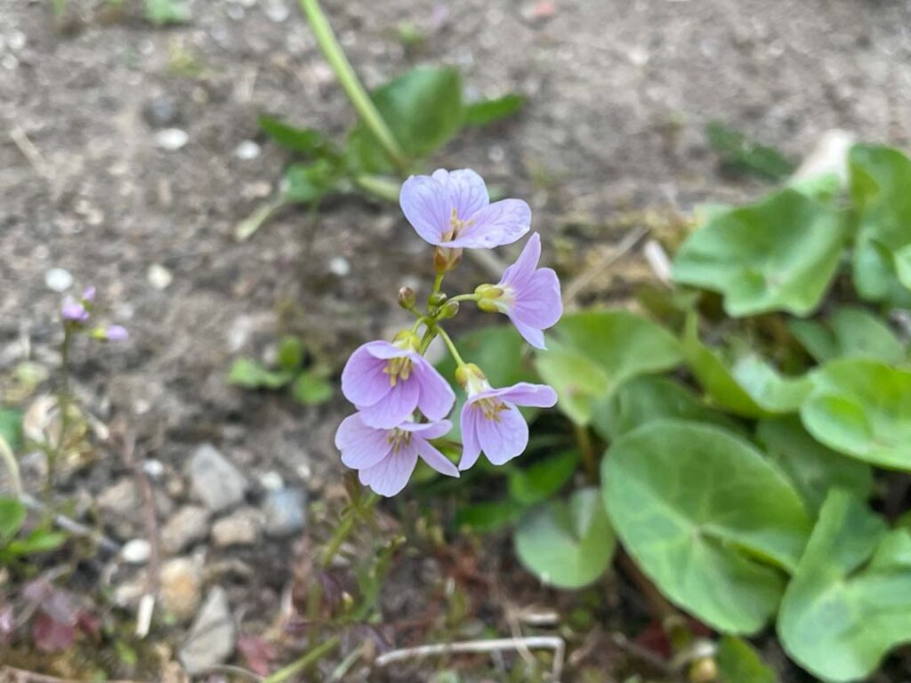 Nu går det stærkt. Påskens regnvejr har fået mange planter til at gro og ved kanten af havedammen er både Engkarse, Eng-Nellikerod, Eng-kabbeleje og Engforglemmigej nu sprunget ud.
