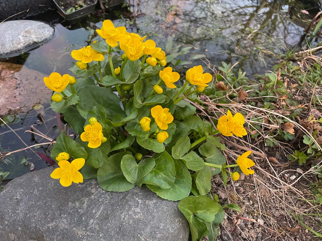 Eng-kabbeleje er et ’must’ ved kanten af havedammen. Den blomster i april med sine store gule blomster og er derfor vigtig for de insekter, der søger føde på det tidlige tidspunkt.
