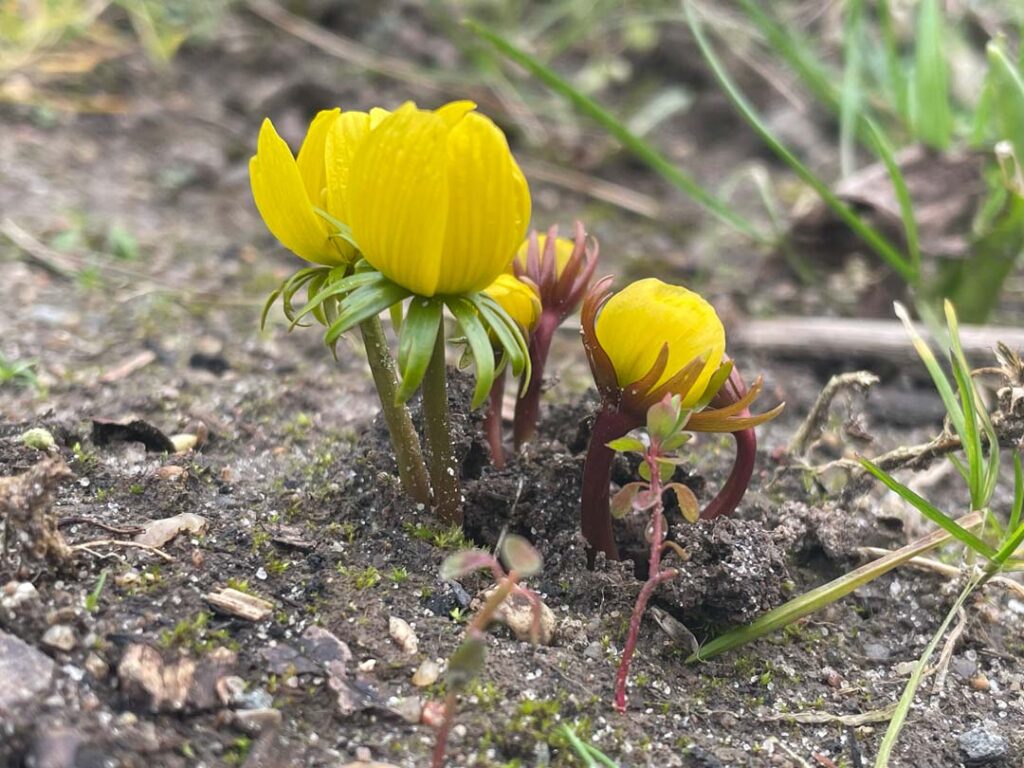 Opret kobjælde står på spring og venter på lidt lunere temperature og vintergækker og Erantis er allerede fremme.