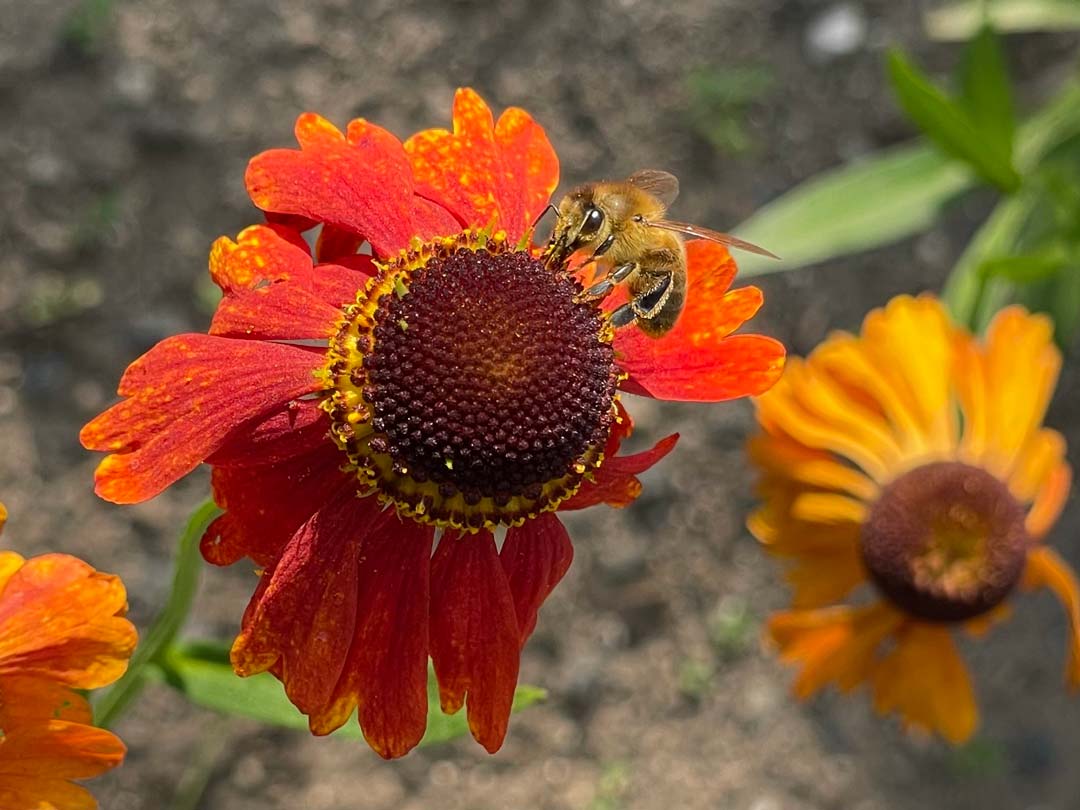 I blomsterbedet findes der mange insekter, især hvis det består af hjemmehørende planter, som passer til jordbundstypen.