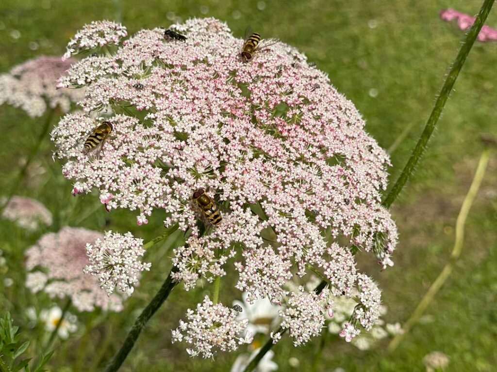 I den vilde have er Svirefluer små, men vigtige aktører. De ligner ofte små hvepse, men er helt ufarlige for mennesker. Som voksne bestøver de blomster og bidrager til havens biodiversitet, mens deres larver lever af bladlus og hjælper med at holde planterne sunde. At lade blomster og urter vokse vildt giver svirefluerne gode levevilkår – og samtidig styrkes hele havens økosystem.